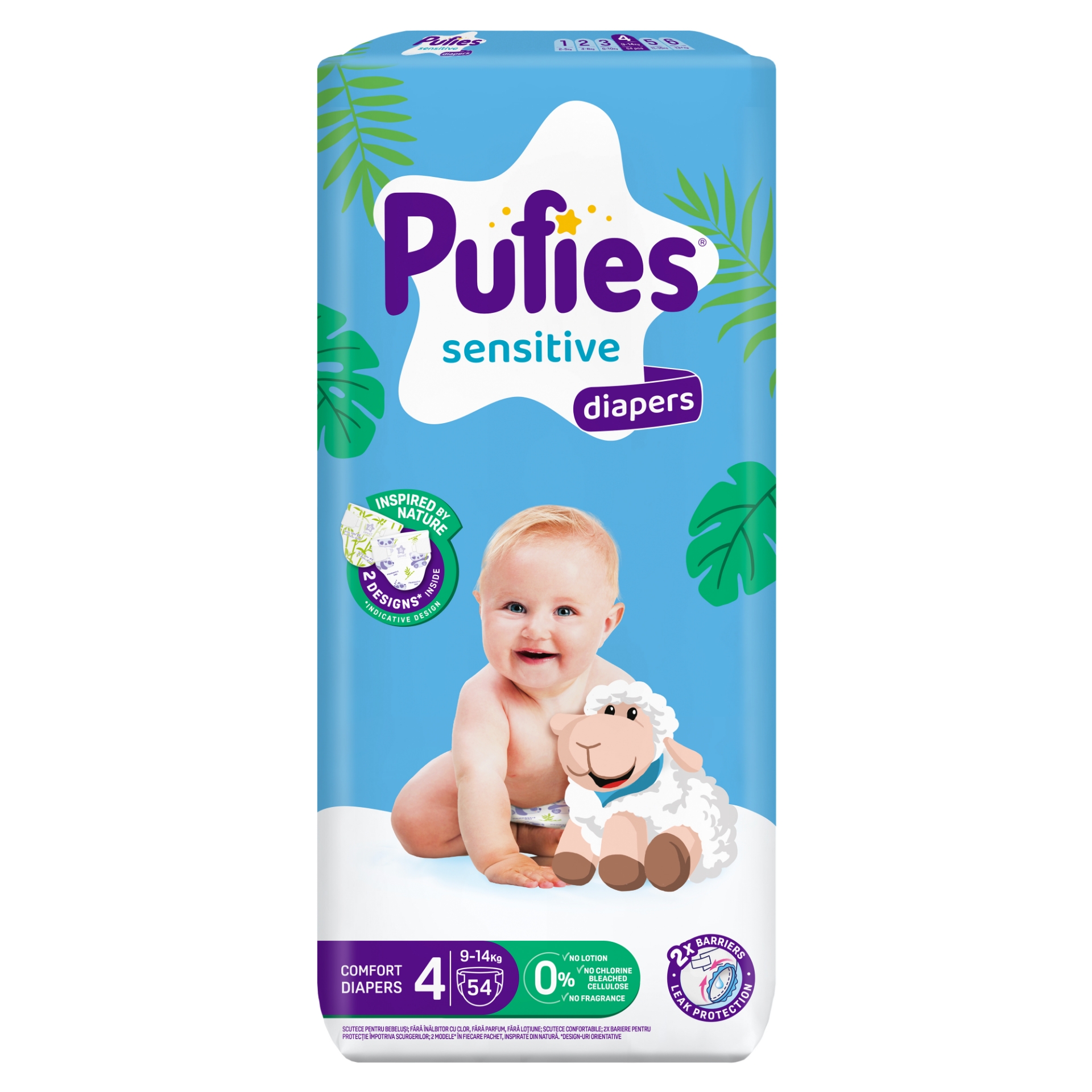 Пелени Pufies Sensitive са създадени да осигурят максимална сухота, комфорт и защита на чувствителната бебешка кожа. Подходящи за ежедневна употреба, те са изработени от хипоалергенни и дишащи материали, които предпазват от раздразнения. Супер абсорбиращата сърцевина задържа влагата, а индикаторът за влага улеснява родителите при смяната на пелените.