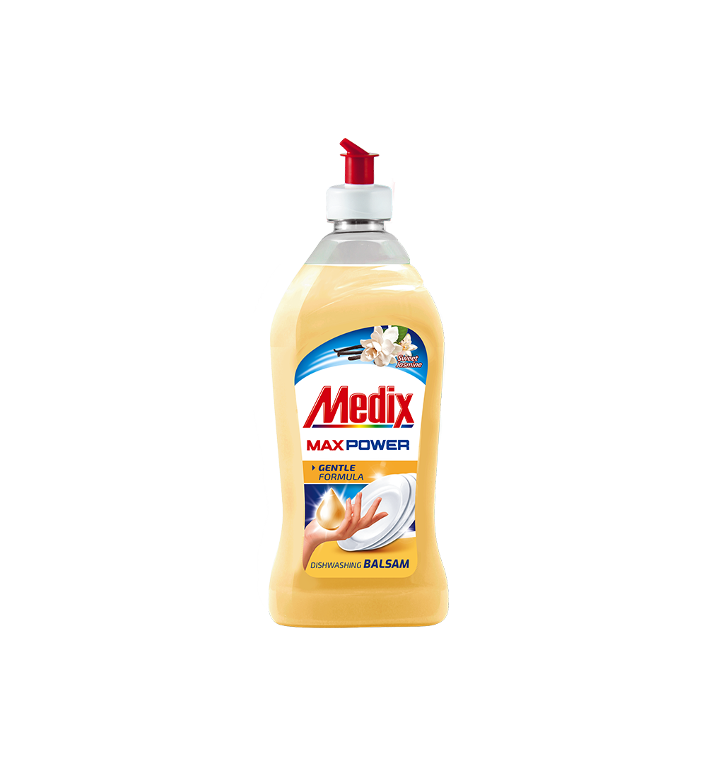 Medix Max Power Balsam Sweet Jasmine е ултраконцентриран препарат за съдове с балсам формула, който комбинира мощно действие срещу мазнини и упорити замърсявания с деликатна грижа за ръцете. Само няколко капки са достатъчни, за да оставят съдовете блестящо чисти, докато нежният жасминов аромат носи свежест и комфорт при всяко измиване.