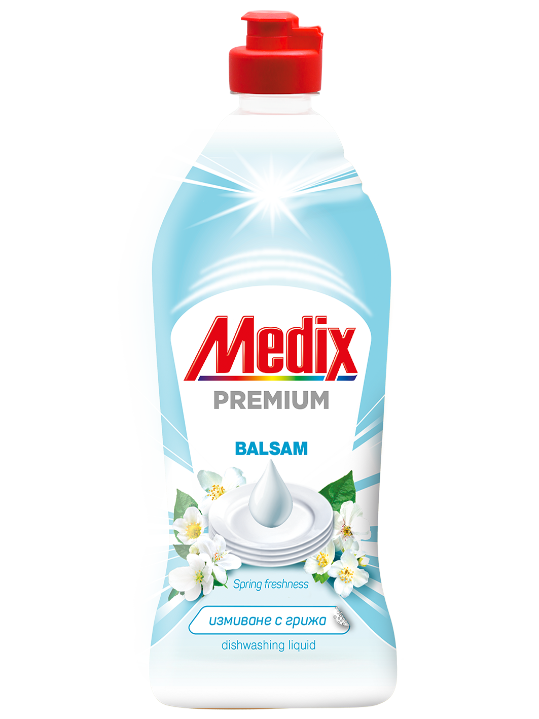 Medix Premium Balsam Spring Freshness е висококачествен препарат за съдове с балсам формула, която ефективно премахва мазнини и замърсявания, като същевременно щади и защитава кожата на ръцете. Благодарение на свежия пролетен аромат, миенето на съдове става по-приятно и освежаващо.