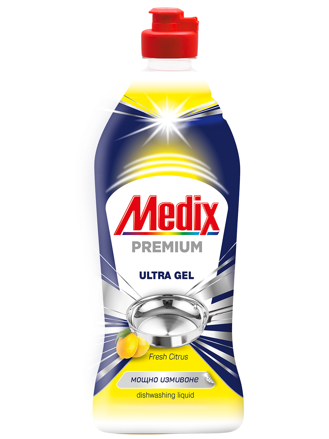 Medix Premium Gel Fresh Citrus е високоефективен препарат за съдове с гъста гел формула, която лесно и бързо премахва мазнини и упорити замърсявания. Само няколко капки са достатъчни, за да оставят съдовете безупречно чисти. Свежият цитрусов аромат прави всяко измиване приятно и освежаващо.