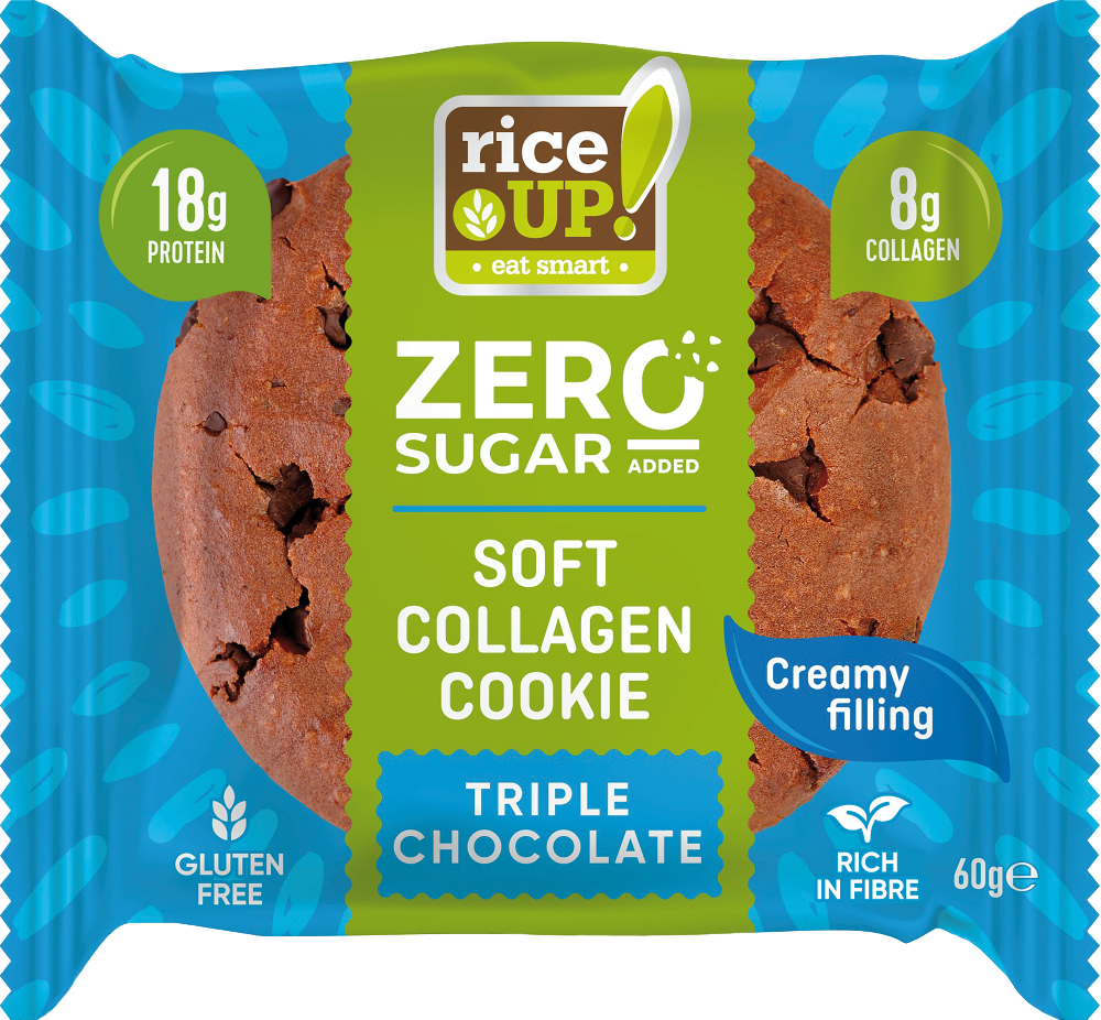 Насладете се на хрупкава и здравословна закуска с Колагенова бисквита RiceUP! с наситен вкус на троен шоколад. Тази бисквита е идеалният избор за всеки, който търси вкусен снакс, обогатен с колаген за подпомагане на здравето на кожата и ставите. Тя е без глутен и предлага засищащо, но леко удоволствие.