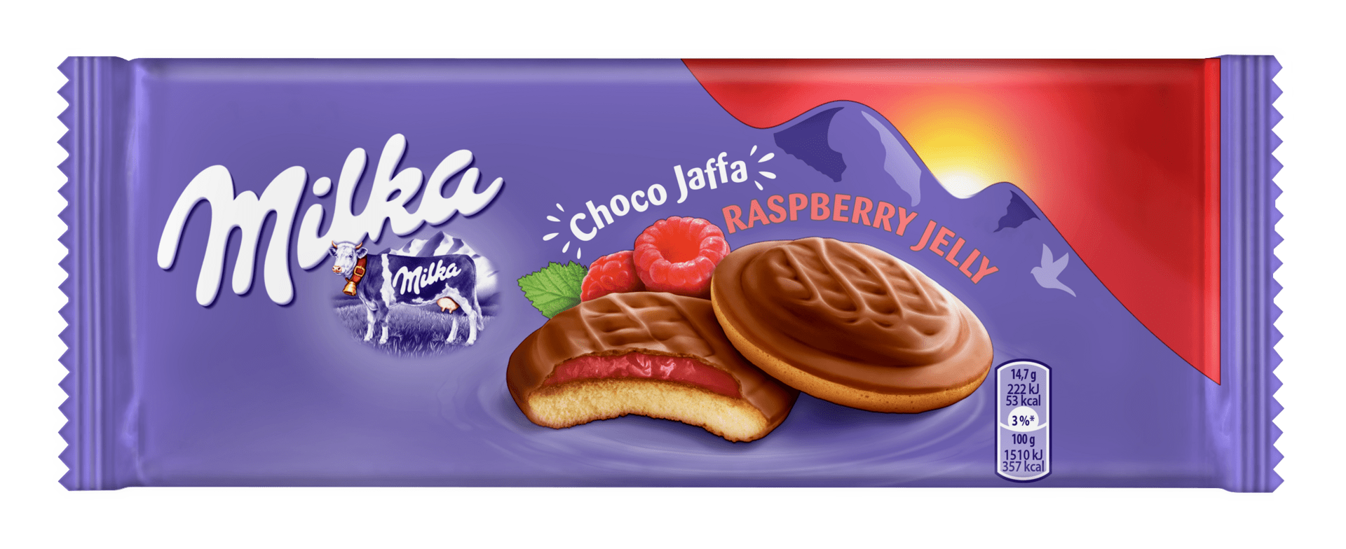 Потопете се в плодово-шоколадово изкушение с Бисквити Milka и неустоим малинов пълнеж. Тези бисквити съчетават хрупкава основа, сладко-тръпчив малинов крем и нежен алпийски млечен шоколад Milka, който покрива всяка хапка. Идеалният десерт, когато търсите баланс между плодова свежест и богат шоколадов вкус.