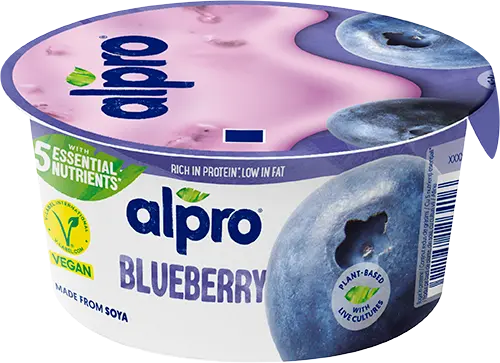 Насладете се на свежестта на боровинките в комбинация с кремообразната текстура на заквасения соев десерт ALPRO. Този продукт е идеалната растителна алтернатива на киселото мляко, която е естествено без лактоза и без глутен. Богат на растителен протеин, той е перфектен за здравословна закуска или лек десерт.