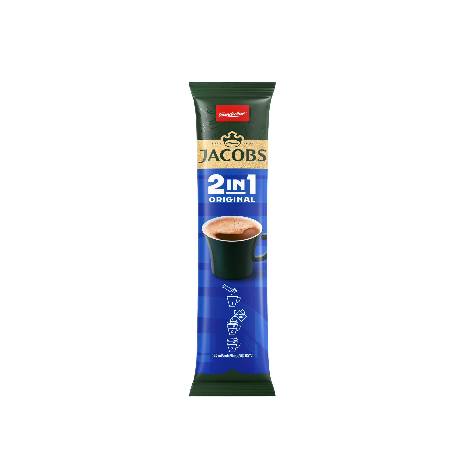 Jacobs 2в1 Original – класическо кафе с мляко, но без захар.Тази комбинация е идеална за любителите на по-балансирания вкус – нежно разтворимо Jacobs кафе и мляко на прах в удобен стик. Получавате ароматна и кремообразна напитка, в която сами можете да добавите желаното количество захар или подсладител. Лесно и бързо – просто добавете гореща вода, разбъркайте и се насладете.