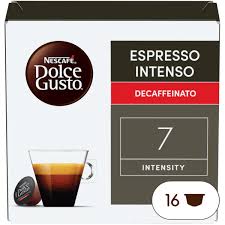 Насладете се на силен и балансиран вкус на еспресо, но без кофеин (Decaffeinato), с капсулите Nescafe Dolce Gusto Espresso Intenso Decaffeinato. Този бленд е създаден за любителите на плътното еспресо, като предлага наситен аромат, богат вкус и кадифена пяна, без стимулиращия ефект на кофеина. Идеален за консумация по всяко време на деня, дори вечер. Опаковката съдържа 16 капсули, които осигуряват 16 порции еспресо без кофеин.
