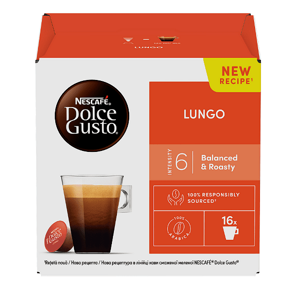 Насладете се на удължено, но класическо кафе изживяване с капсулите Nescafe Dolce Gusto Lungo. Този бленд е създаден за любителите на "дългото кафе", като предлага балансиран, наситен вкус с кадифена пяна (крема). Lungo е идеален за сутрешна ободряваща чаша кафе. Опаковката съдържа 16 капсули, които осигуряват 16 порции Lungo.