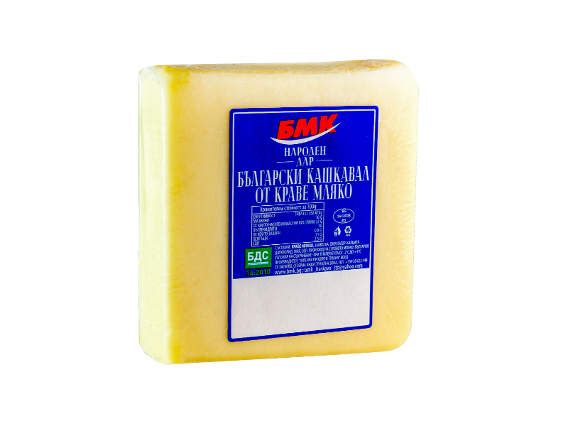 Насладете се на автентичния вкус и високото качество на краве кашкавал "Народен дар", произведен по Български държавен стандарт (БДС). Тази маркировка гарантира, че продуктът е направен по стриктна, традиционна технология с използване само на висококачествено краве мляко, без добавки. Със своя богат вкус, гладка текстура и удобна опаковка от 400 г, той е идеалният избор за сандвичи, пица, запеканки или за добавка към всяка трапеза.