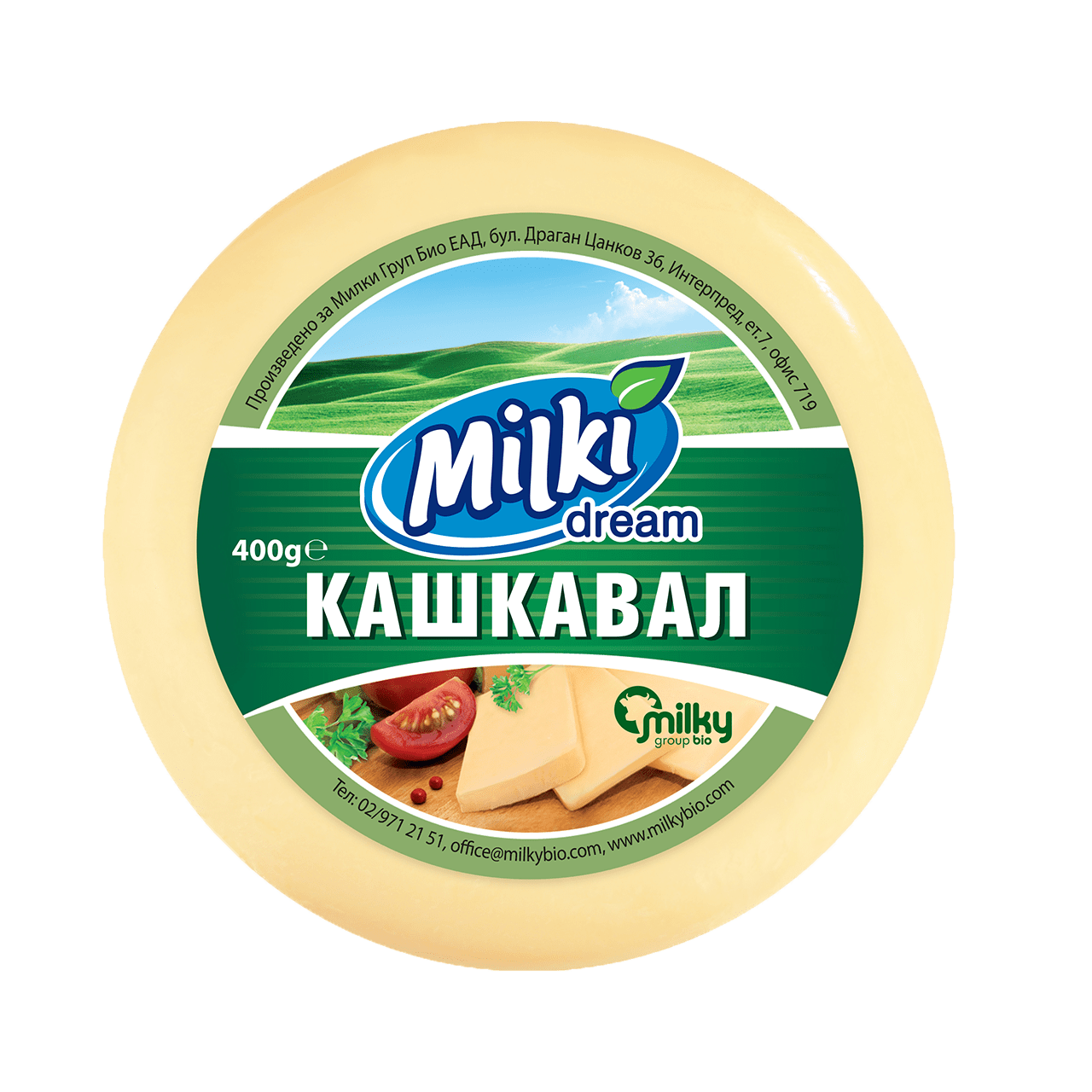 Milki Dream Кашкавал 400 г (кръгъл) е висококачествен млечен продукт, произведен от подбрано краве мляко. Отличава се с плътен вкус, стегната структура и характерен аромат, който го прави подходящ както за директна консумация, така и за кулинарна употреба.