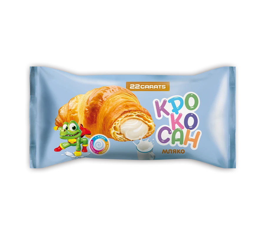 Насладете се на въздушния и пухкав вкус на кроасан "22 Карата" с нежен млечен пълнеж. Тази закуска е идеалното решение, когато имате нужда от бързо, вкусно и засищащо сладко изкушение. Кремообразният млечен крем, обгърнат от меко, златисто тесто, е перфектен за старт на деня или за следобедна пауза.