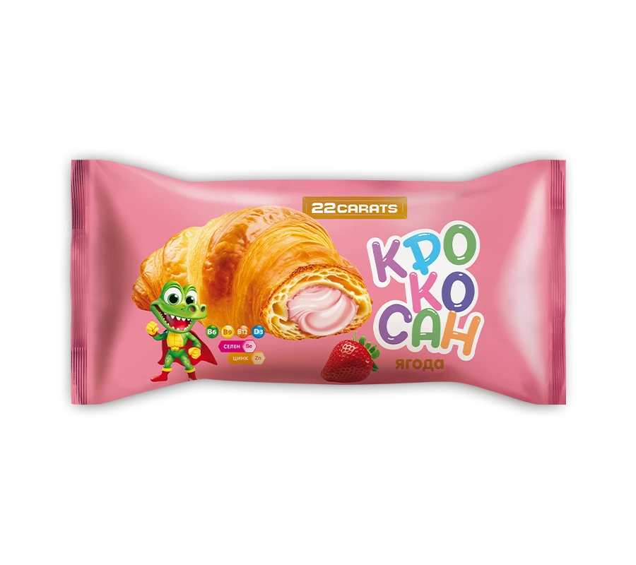 Насладете се на въздушния и пухкав вкус на кроасан "22 Карата" с нежен ягодов пълнеж. Тази закуска е идеалното решение, когато имате нужда от бързо, вкусно и засищащо сладко изкушение с плодов привкус. Сладко-тръпчивият ягодов крем, обгърнат от меко, златисто тесто, е перфектен за старт на деня или за следобедна пауза.