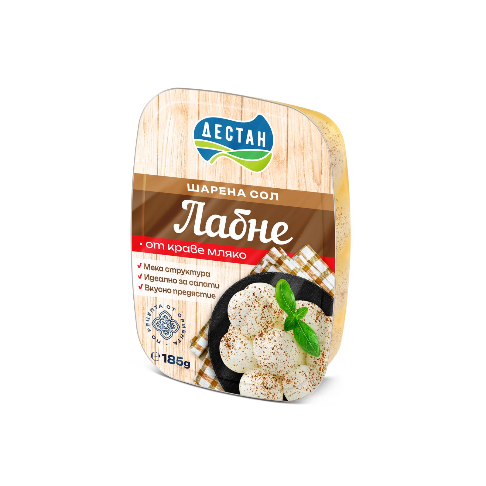 Насладете се на богатото и кремообразно Лабне от краве мляко "Дестан", гарнирано с традиционна шарена сол. Лабнето е вид цедено кисело мляко, което се отличава с изключително гъста, мазителна консистенция, напомняща на крема сирене. Това предястие е обогатено с класическа българска шарена сол, която придава автентичен и пикантен вкус.