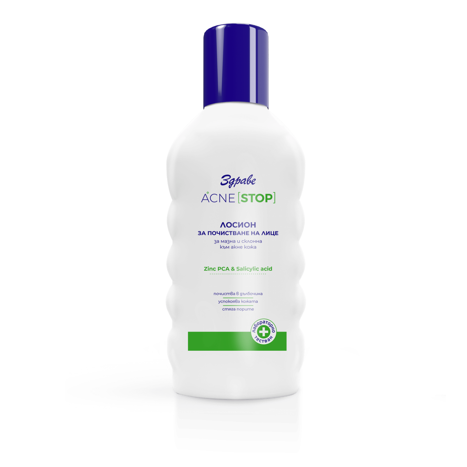 Открийте ефективна грижа за кожа, склонна към акне, с лосиона за почистване на лице "Здраве" Акне стоп. Този лосион е специално разработен за дълбоко почистване на порите, премахване на излишния себум и предотвратяване на появата на нови пъпки. Активните му съставки действат антибактериално и успокояващо, като оставят кожата чиста, матирана и освежена.
