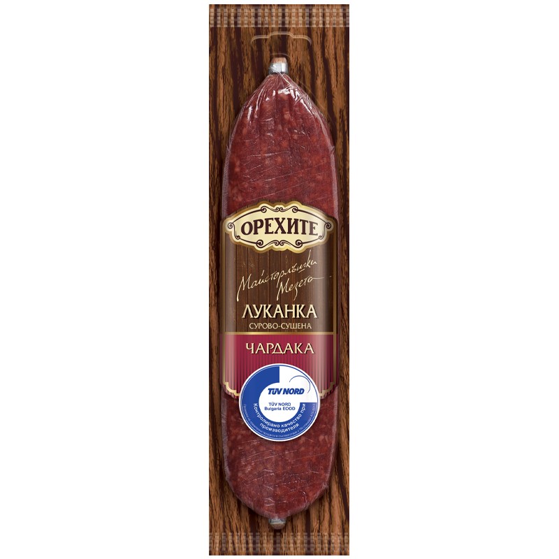 Насладете се на автентичния вкус на България с луканка "Чердака" от "Орехите". Този сурово-сушен деликатес е произведен по традиционна технология, като е отлежал за дълъг период от време, за да развие своя характерен плътен и наситен вкус. Луканка "Чердака" е идеалното мезе за ценителите и луксозно допълнение към всяко студено плато.