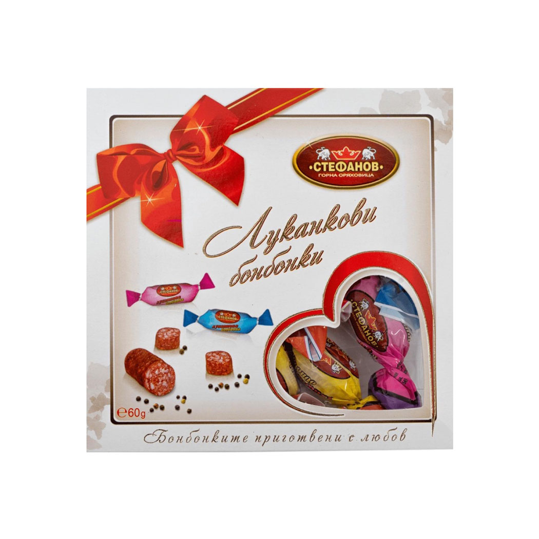 Насладете се на автентичния вкус на луканка в удобен за консумация формат! Луканковите бонбонки "Стефанов" са малки, сурово-сушени хапки, които носят целия плътен и наситен аромат на традиционната луканка. Тази опаковка от 60 грама е идеална за бърз, вкусен и протеинов снакс в движение или за елегантно мезе.