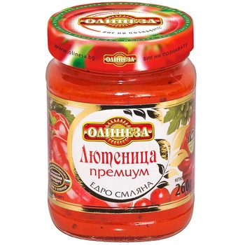 Лютеница Олинеза Премиум е приготвена по традиционна българска рецепта от подбрани зеленчуци – домати, печени червени чушки и патладжани. Едросмляната структура и наситеният вкус създават усещане за домашно приготвена лютеница, а високото качество на суровините я прави отличен избор за ценители на автентичния вкус. Подходяща е както за намазване върху хляб, така и като гарнитура към месни и зеленчукови ястия.