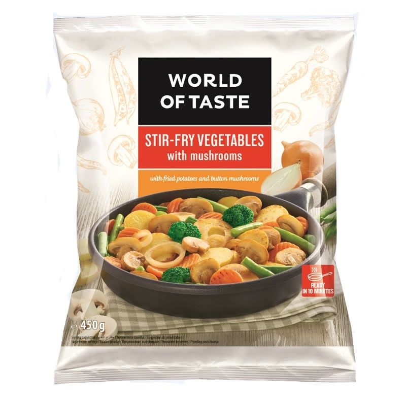 Насладете се на бърза, лесна и вкусна вечеря с Микс за тиган с гъби WOT. Този замразен микс съдържа перфектна комбинация от нарязани зеленчуци и гъби (често включващи гъби, броколи, чушки, моркови и др.), които са бланширани и бързо замразени, за да запазят своята свежест и хранителна стойност. Идеален е за бързо приготвяне на тиган с добавка на соев сос или подправки.