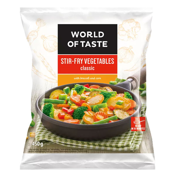 Насладете се на бърза, лесна и вкусна вечеря с Микс за тиган Класик WOT. Този замразен микс съдържа перфектна комбинация от традиционни зеленчуци (често включващи моркови, броколи, карфиол, грах, царевица и зелен фасул), които са бланширани и бързо замразени, за да запазят своята свежест и хранителна стойност. Идеален е за бързо приготвяне на тиган с добавка на соев сос или подправки.