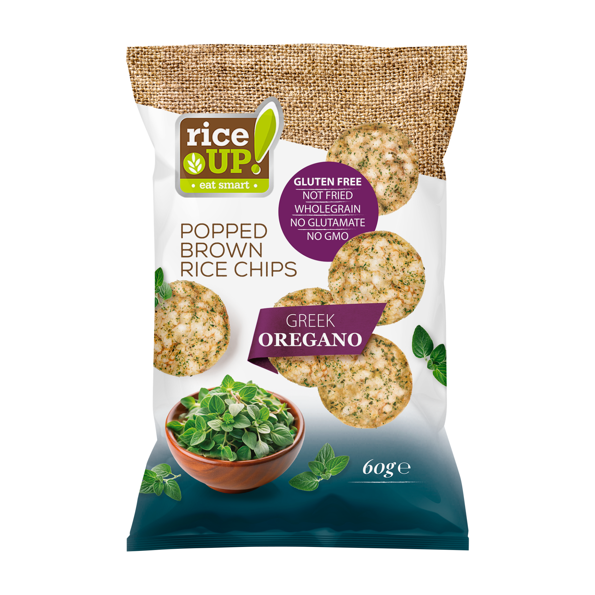 Насладете се на хрупкавия и ароматен Оризов чипс RiceUP! с наситен вкус на гръцки риган. Този чипс е идеален за тези, които търсят лек, но изключително вкусен снакс. Приготвен без пържене и без глутен, той предлага средиземноморско усещане, което е чудесно за самостоятелна консумация или за комбиниране с любимия ви дип.
