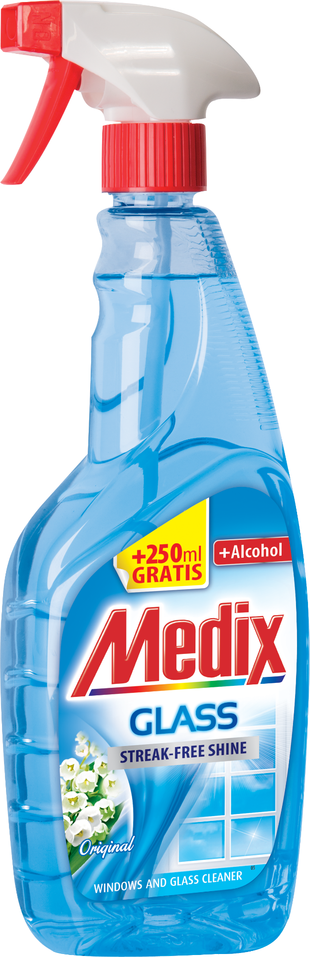 Препаратът за стъкла Medix GLASS Original е надеждно и универсално решение за безупречна чистота на всички стъклени повърхности. Неговата класическа, мощна формула ефективно премахва замърсявания, прах, мазни петна и отпечатъци от пръсти, без да оставя ивици или следи. Продуктът оставя след себе си усещане за кристална чистота и свежест, което ще внесе блясък във вашия дом.