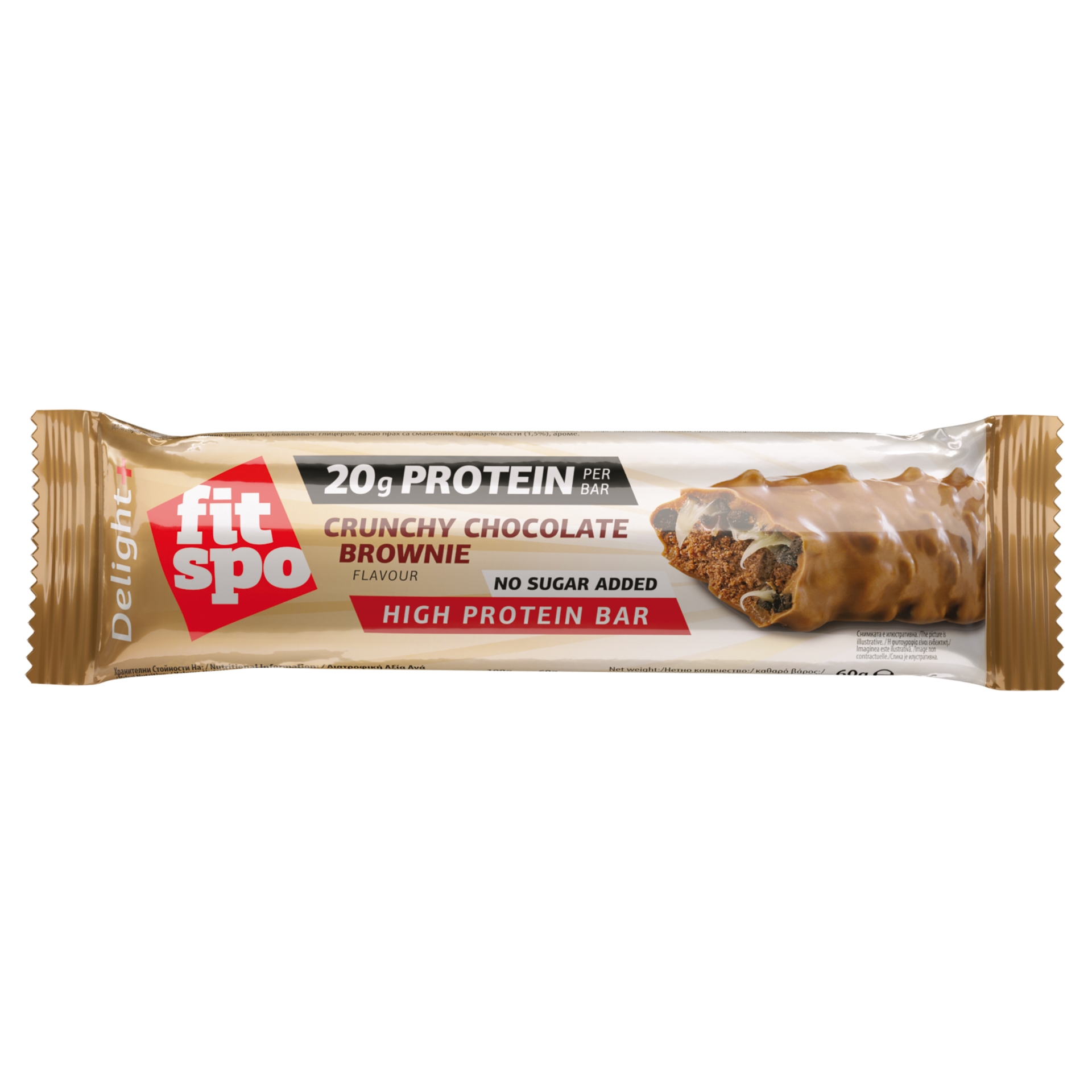 Насладете се на неустоимия десертен вкус на FitSpo Delight – протеинов бар с плътен шоколадов брауни пълнеж и хрупкаво крънчи покритие. Този бар е идеален за тези, които търсят максимално удоволствие и висока доза протеин, без да се чувстват виновни. Той е перфектен за възстановяване след тренировка или като засищащ, но вкусен снакс.