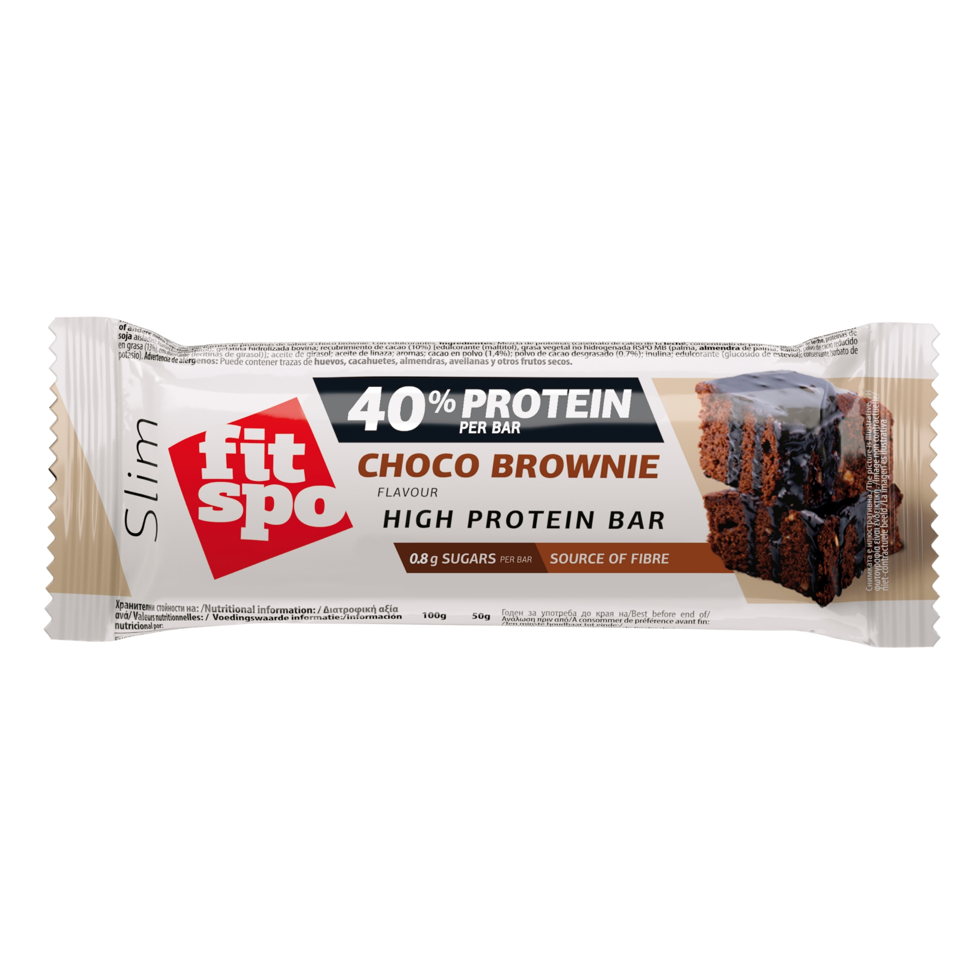 Насладете се на неустоимия десертен вкус на FitSpo Slim – протеинов бар с вкус на шоколадово брауни, идеален за тези, които се стремят към контрол на теглото. Този бар е създаден да бъде засищащ и вкусен снакс, като осигурява балансирано съотношение на протеини и фибри, но с по-малко калории (в сравнение с обикновен десерт).