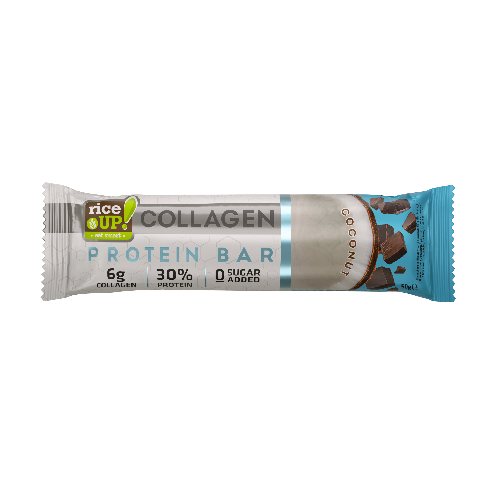 Насладете се на здравословен протеин и грижа за красотата с колагеновия бар RiceUP! с екзотичен вкус на кокос. Този бар е идеален за тези, които търсят питателен снакс с високо съдържание на протеин, като същевременно е обогатен с колаген за подкрепа на здравето на кожата, косата и ставите. Без глутен и с приятен тропически вкус.