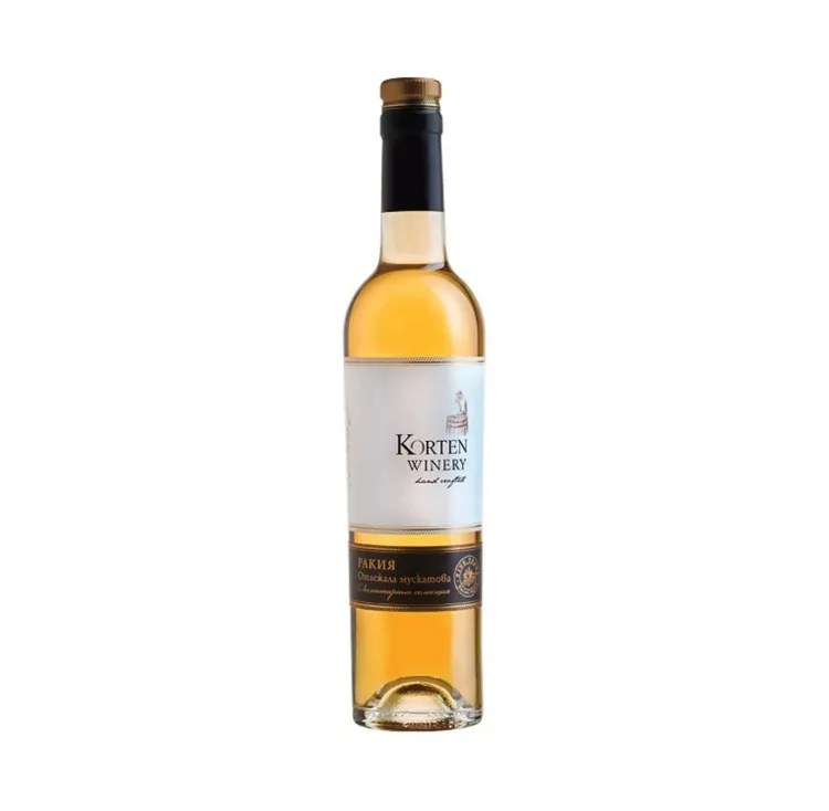 Насладете се на изтънчения и благороден вкус на Ракия Korten отлежала. Тази ракия е зряла в дъбови бъчви, което ѝ придава мек, балансиран вкус, красив златист цвят и богат аромат с деликатни нотки на ванилия и дъб. Korten отлежала е перфектният избор за ценители и за специални поводи.