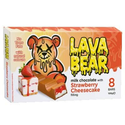 Потопете се в неустоимата комбинация от вкусове с шоколад Lava Bear с пълнеж Ягодов чийзкейк. Този шоколад съчетава нежен млечен шоколад с кремообразен пълнеж, вдъхновен от класическия десерт, с освежаващия привкус на ягода. Идеален за тези, които търсят десертно изкушение в удобен формат.