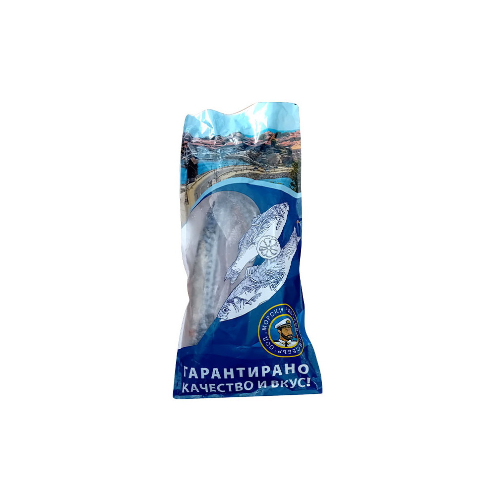 Насладете се на богатия вкус и здравословните ползи на замразена скумрия от "Морски риболов". Скумрията е високо ценена заради своето плътно месо и е изключително богат източник на Омега-3 мастни киселини и витамин D. Бързото замразяване (IQF) гарантира, че рибата запазва своите хранителни качества и свежест до момента на готвене. Идеална е за печене на скара, фурна или за мариноване.