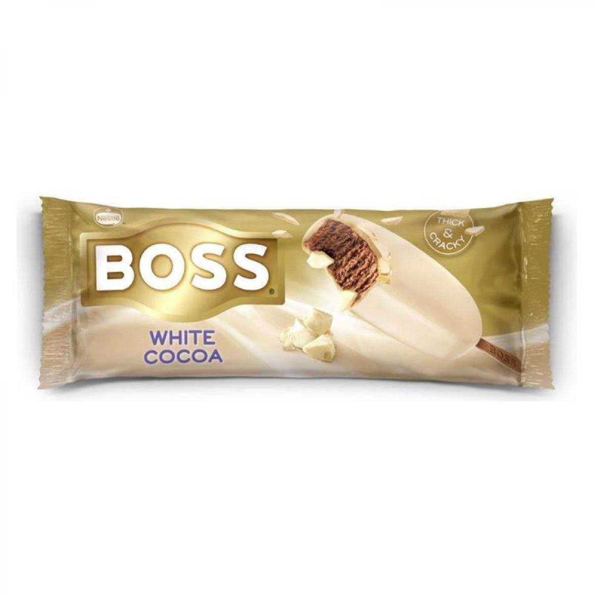 Насладете се на класическото, кремообразно удоволствие със сладолед Boss в бял цвят, който обикновено е с вкус на ванилия или е покрит с бял шоколад. Този стик е перфектният избор за бърза сладка пауза, като предлага плътна, млечна текстура и наситен, но деликатен вкус.