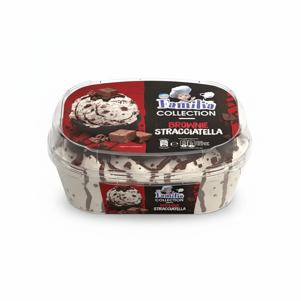 Насладете се на неустоимата комбинация от вкусове със сладолед FAMILLIA, съчетаващ кремообразна Страчатела (ванилов сладолед с парченца шоколад) и плътен, наситен вкус на шоколадово брауни. Този сладолед е перфектният избор за всеки, който търси богат, десертен и изключително вкусен сладолед. Голямата опаковка от 900 мл е идеална за споделяне със семейството и приятелите.