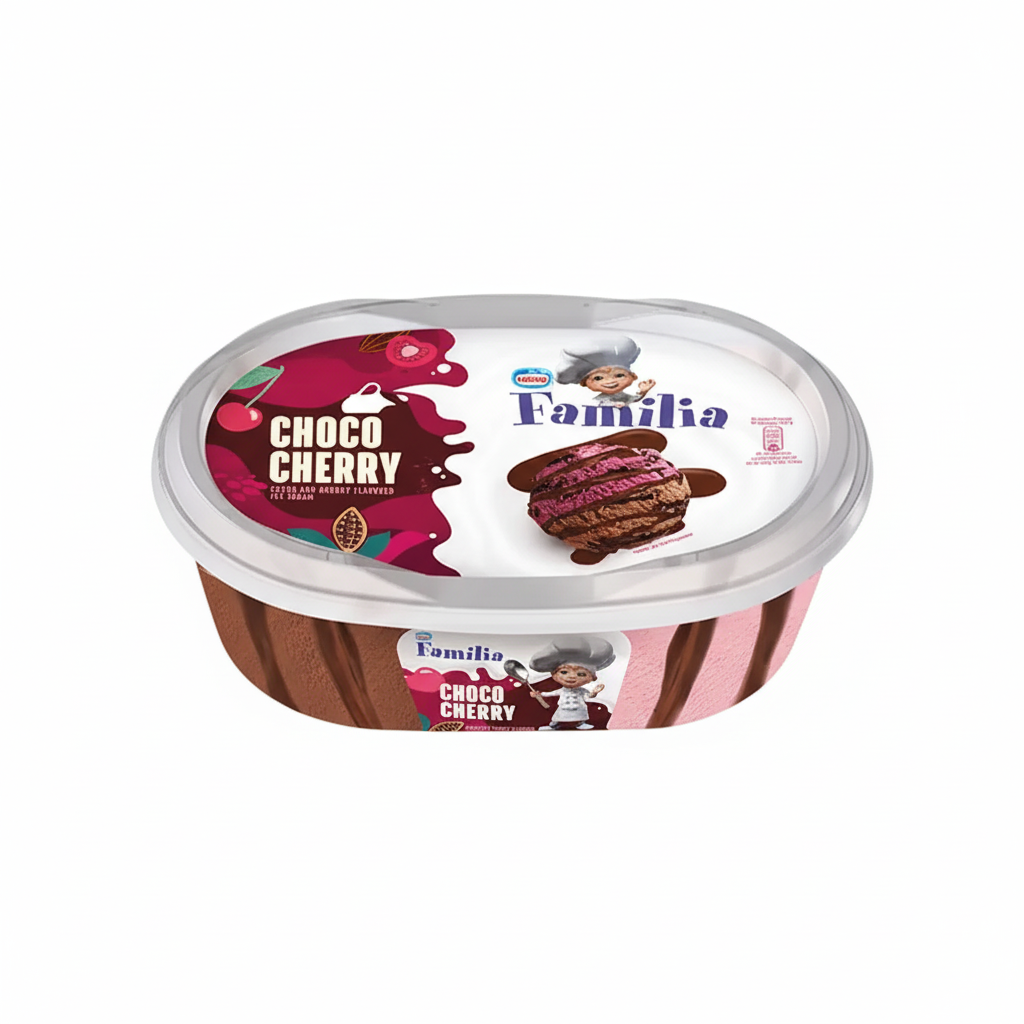 Насладете се на цветно и освежаващо удоволствие със сладолед FAMILLIA, съчетаващ класическия вкус на какао с плодовата свежест на череша. Този сладолед е перфектната комбинация от кремообразна текстура и плодово-шоколадов вкус. Голямата опаковка от 345 грама е идеална за споделяне със семейството или за да се насладите на богата порция от любимия си десерт.