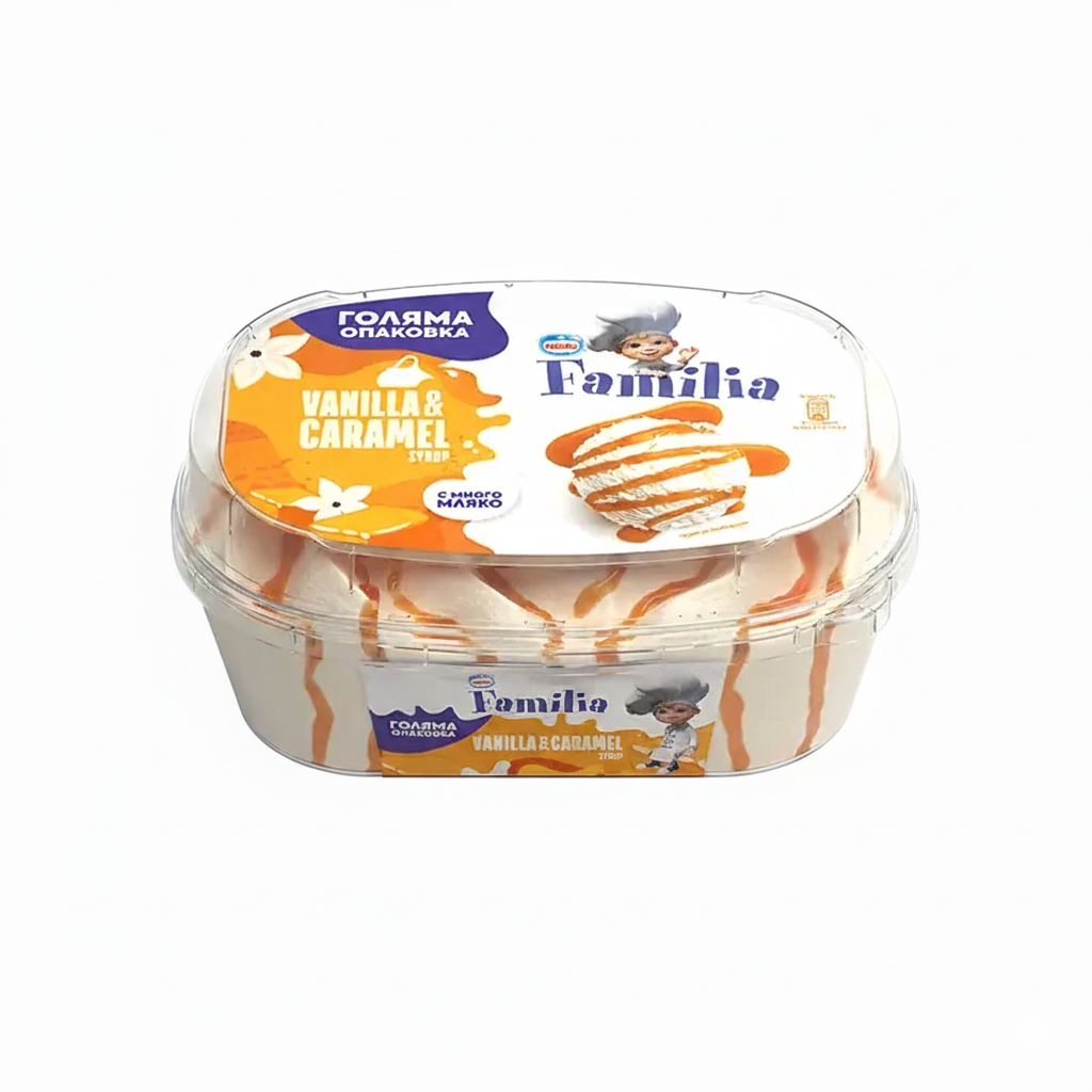 Насладете се на класическото, топящо се в устата удоволствие със сладолед FAMILLIA Крем карамел. Този сладолед е перфектният избор за всеки, който търси богат, кремообразен вкус, с деликатен аромат на карамел. Плътната текстура и сладкият завършек го правят идеален за семеен десерт. Голямата опаковка от 900 мл е идеална за споделяне със семейството и приятелите.