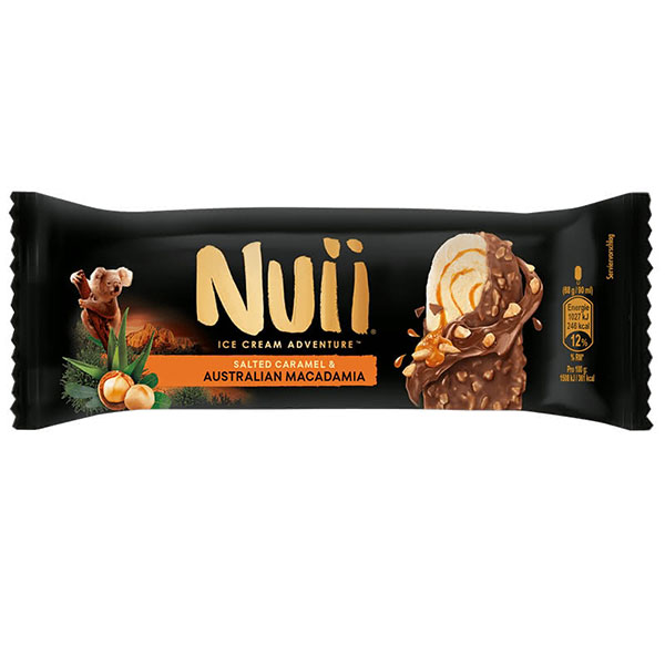 Потопете се в премиум удоволствие със сладолед Nuii, съчетаващ кремообразен сладолед с наситен вкус на солен карамел. Всеки стик е покрит с дебел слой хрупкав шоколад, който контрастира идеално с гладката сърцевина. Nuii е създаден за тези, които търсят изискан десерт с комплексен и плътен вкус.