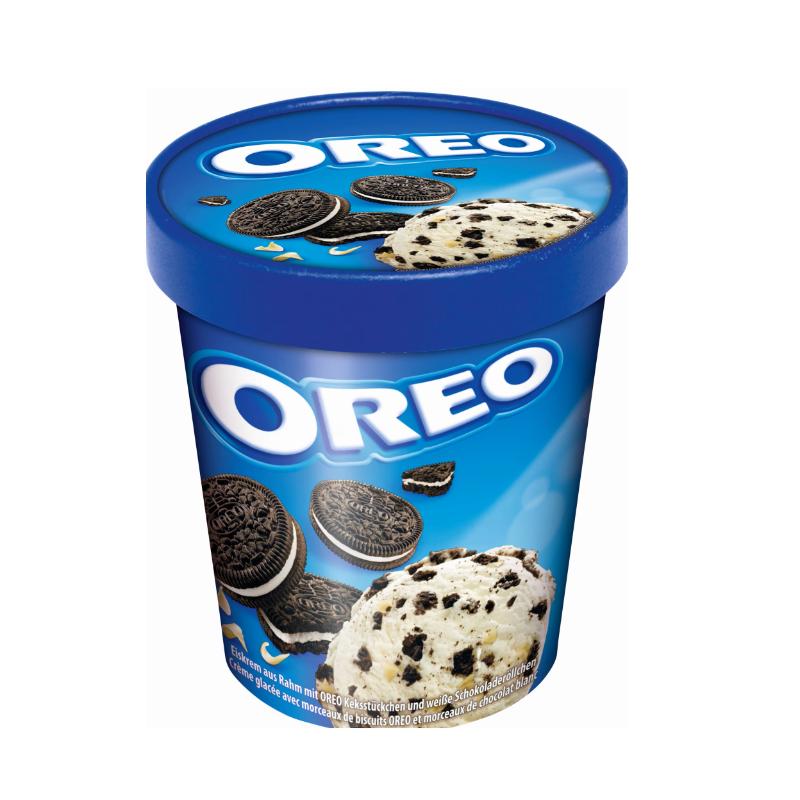Вкус Oreo: Класическа комбинация от нежен ванилов сладолед и щедри парченца какаова бисквита Oreo.