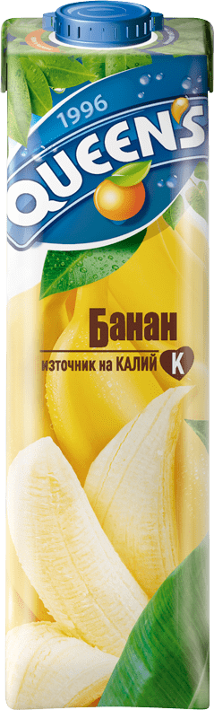 Сок Queen’s банан 1 л е плодов нектар с плътен и сладък вкус на узрели банани. Отличава се с кремообразна текстура и богат аромат, което го прави подходящ избор за любителите на тропически плодови напитки. Опаковката от 1 литър е удобна за ежедневна консумация у дома, на работа или в училище.