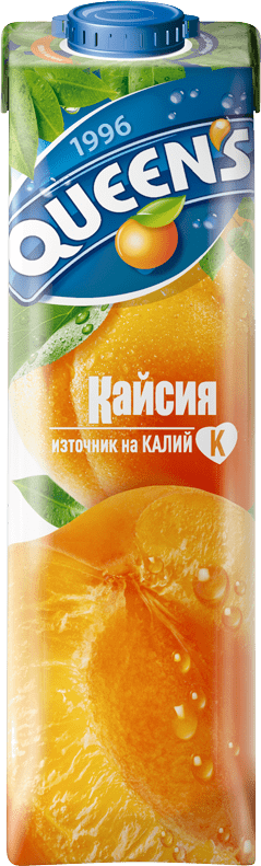 Сок Queen’s кайсия 1 л е плодов нектар с богат и нежен вкус на узрели кайсии. Съчетава естествената сладост и леко киселия плодов акцент, което го прави чудесен избор за всяко време на деня. Опаковката от 1 литър е удобна за ежедневна употреба – у дома, на работа или в училище.