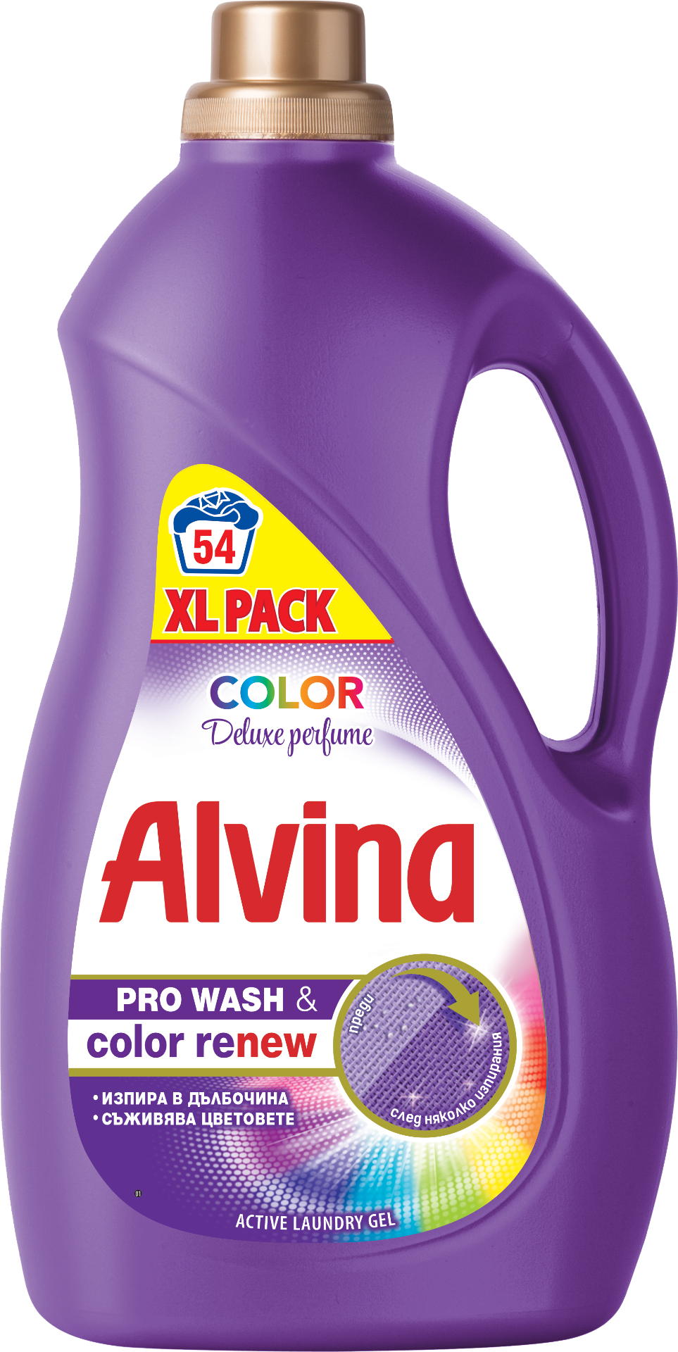 Течният перилен препарат Alvina Color & Perfume е създаден да осигури безупречна чистота и дълготраен, завладяващ аромат на вашите цветни дрехи. Мощната му формула ефективно премахва замърсяванията, докато специалните парфюмни микрокапсули се грижат за това прането ви да ухае невероятно свежо и приятно за по-дълго време. Опаковката от 2.7л е достатъчна за до 54 пранета, което го прави икономичен и практичен избор.