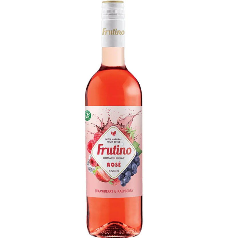 Насладете се на свежестта на лятото с ароматизираната винена напитка Frutino Розе, съчетаваща деликатната основа на розе с неустоимия вкус на ягода и малина. Тази комбинация от горски плодове създава лека, сладка и изключително освежаваща напитка. Frutino е идеалният избор за леки вечери, летни партита или като аперитив.
