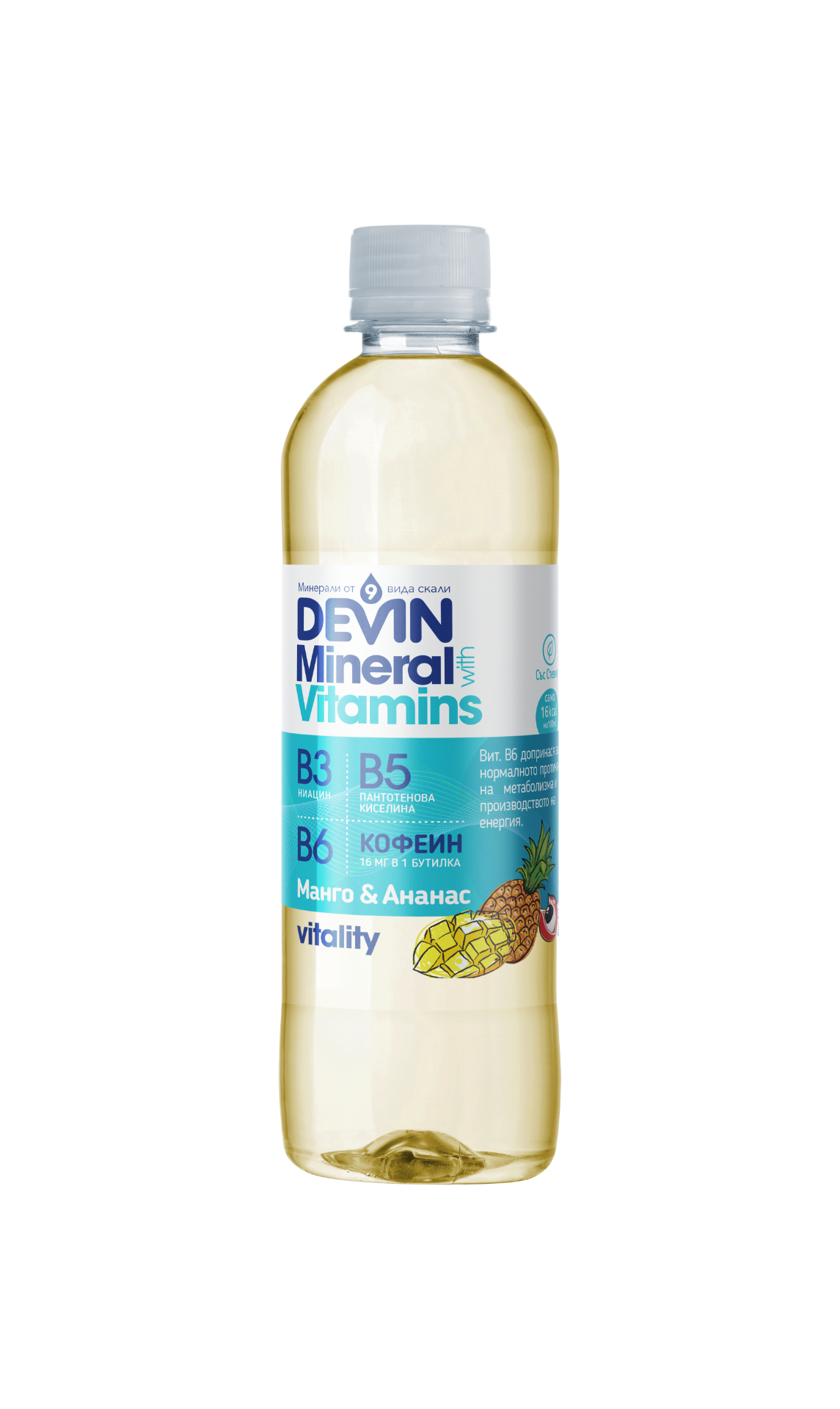 Насладете се на тропическата експлозия от вкусове с витаминна вода Devin с аромат на манго и ананас. Тази функционална напитка е създадена на основата на чиста минерална вода Devin, като е обогатена с важни витамини и има екзотичен плодов вкус. Тя е идеалният начин да се хидратирате и да си набавите допълнителни хранителни вещества през целия ден.