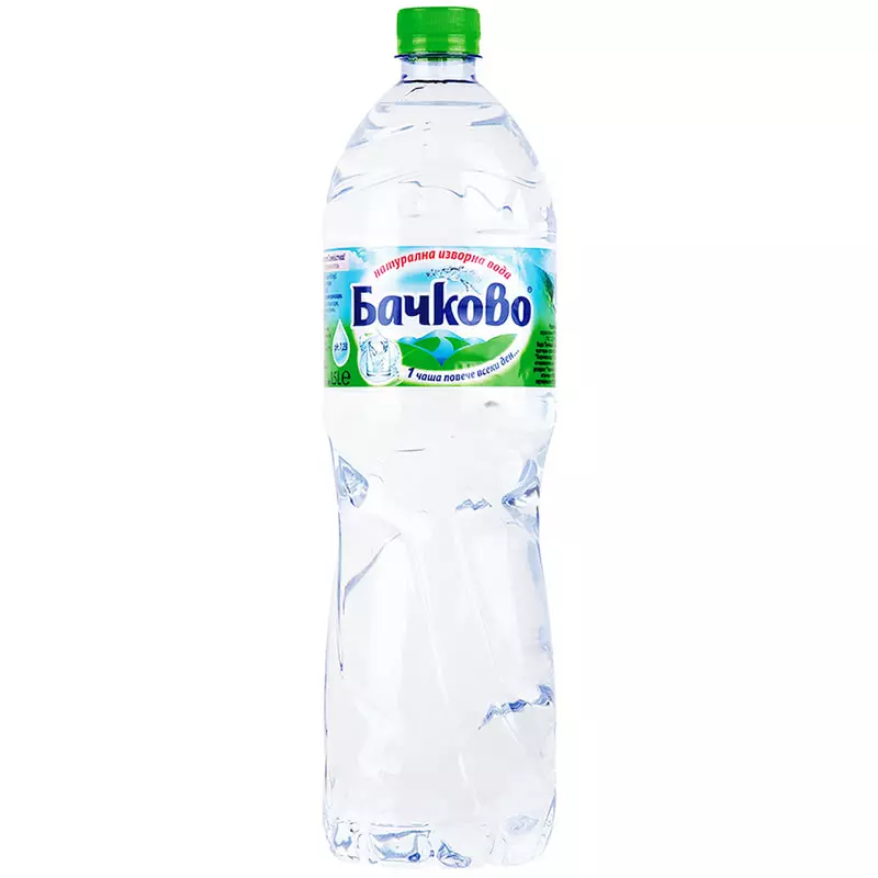 Вода изворна Бачково 1,5 л е натурална изворна вода с мек и балансиран вкус. Извира от чисти планински извори в Родопите и е естествено филтрирана през скали и минерални пластове. Благодарение на ниската си минерализация е подходяща за ежедневна консумация от цялото семейство.