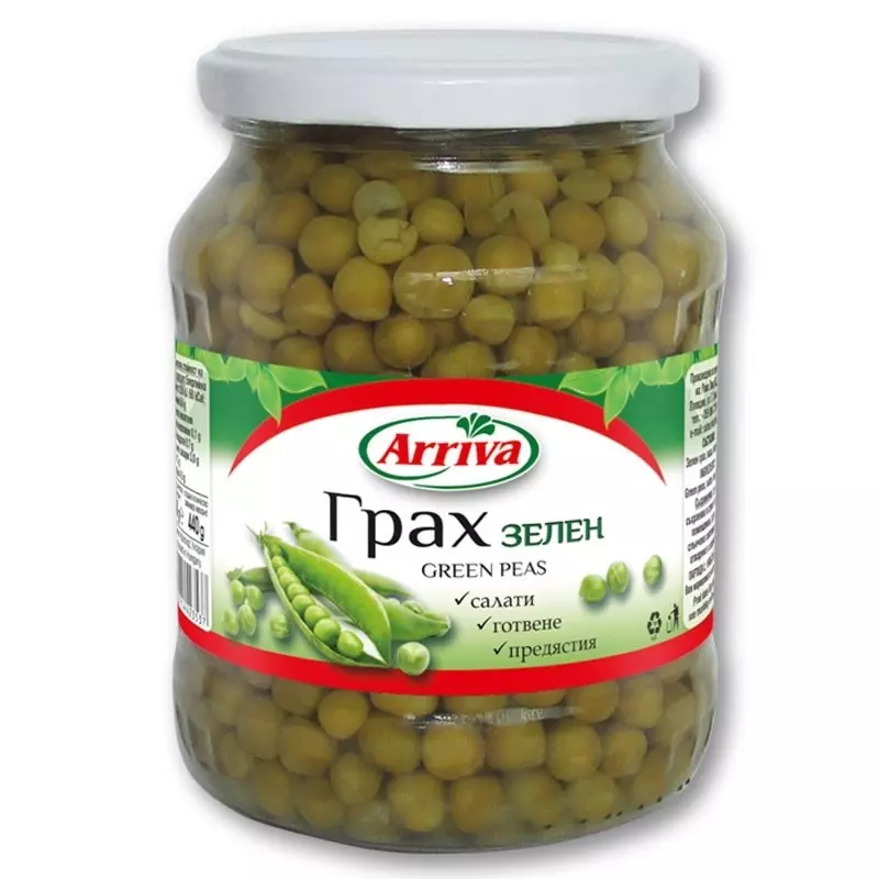 Насладете се на свежестта и деликатния вкус на зелен грах Arriva. Консервиран в стъклен буркан, той е перфектно сварен и готов за директна употреба във вашите ястия. Грахът е богат на растителен протеин и фибри, което го прави идеална здравословна добавка към всяка трапеза – от салати и гарнитури до супи и яхнии.
